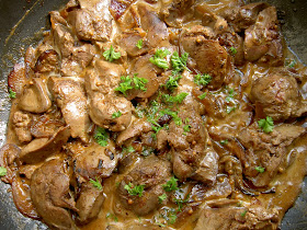 Now add in the liver pieces, the remaining water, cover and cook for 5-7 mins, or until some of the water has evaporated and the meat is tender.